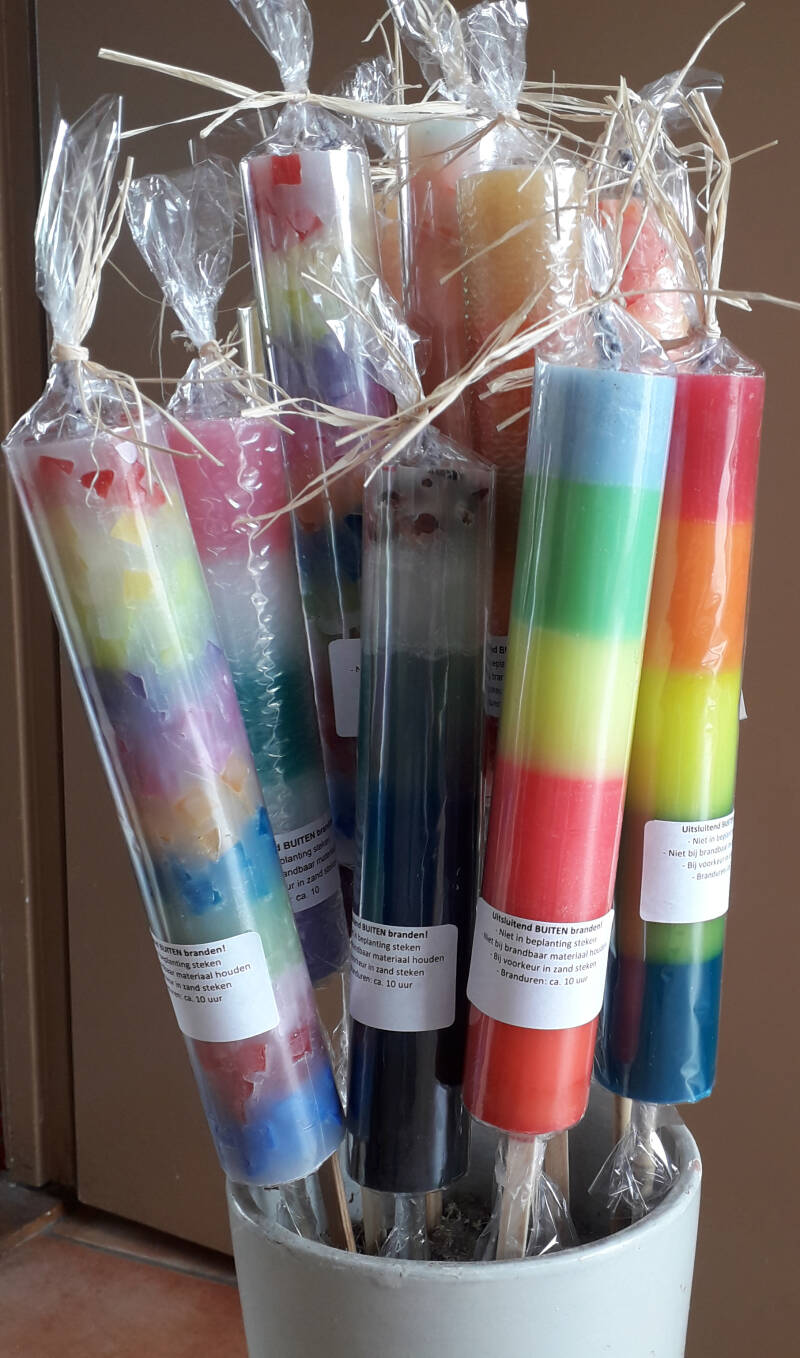 We hebben handgemaakte kaarsen & tuinfakkels in alle soorten en maten. Ze zijn ook op kleur en vorm te bestellen.